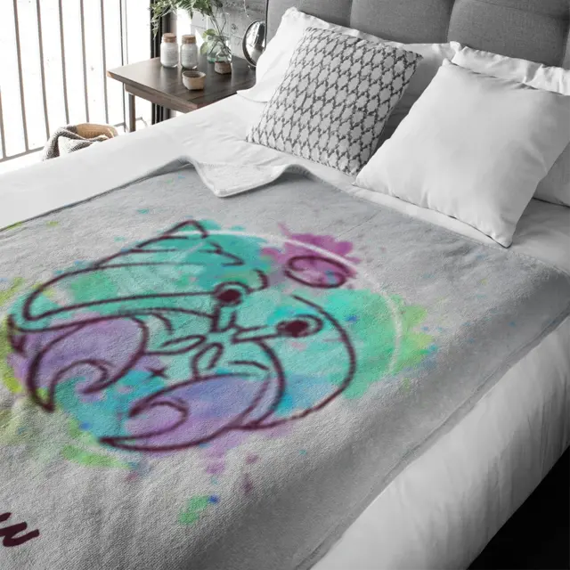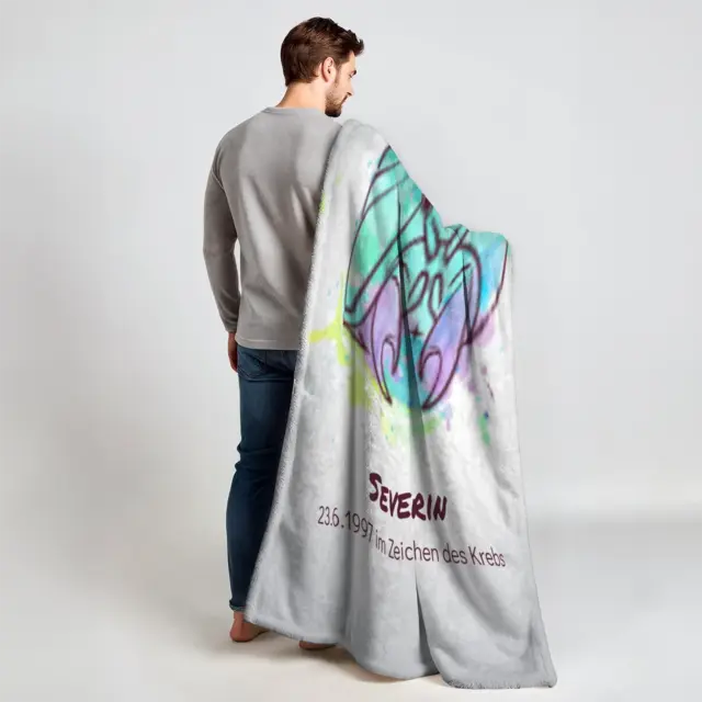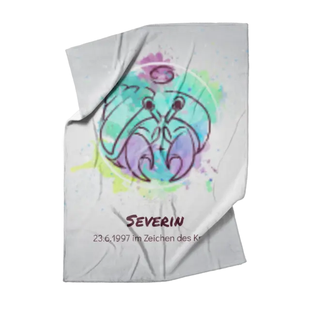 Fotodecke als Geschenk gestalten – 140 x 200cm – Krebs Splashes mit Namen bunt