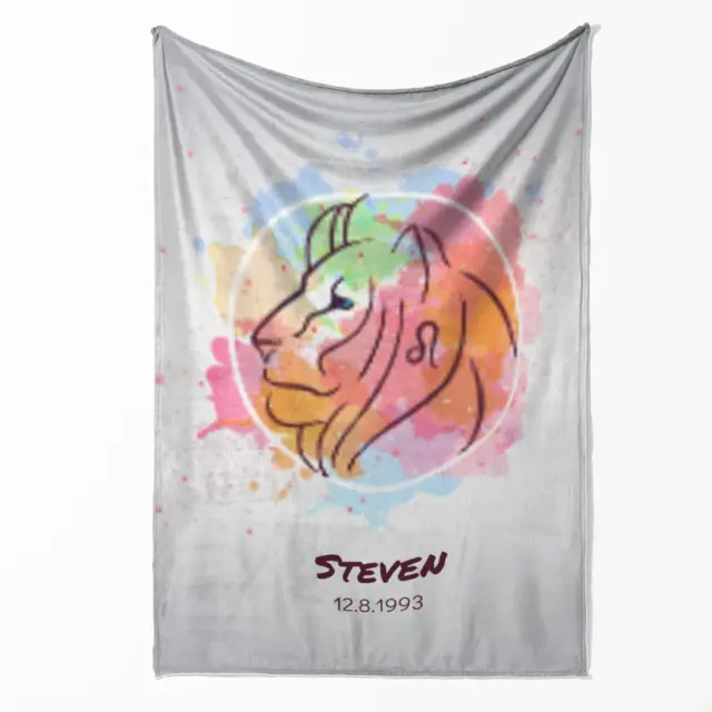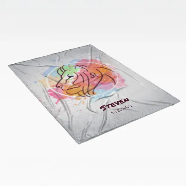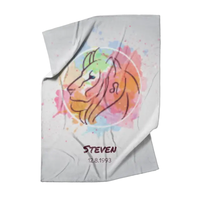Fotodecke als Geschenk gestalten – 140 x 200cm – Löwe Splashes mit Namen bunt