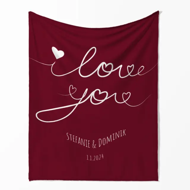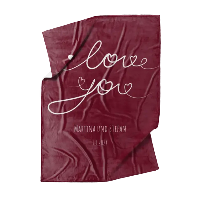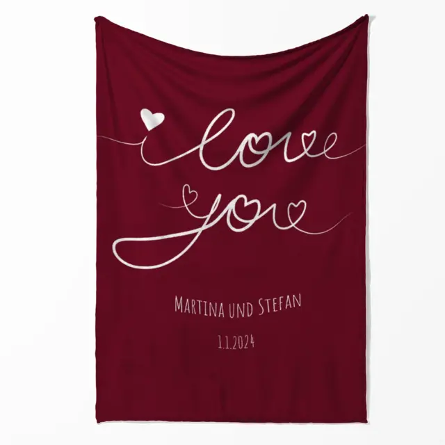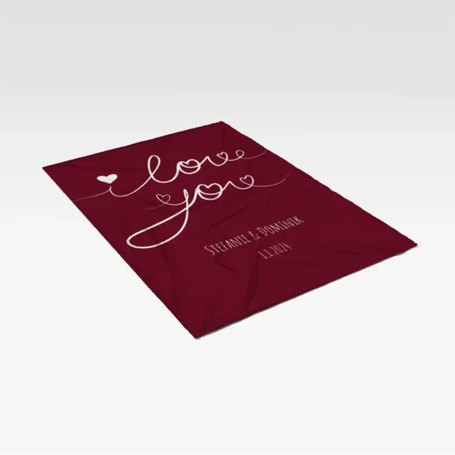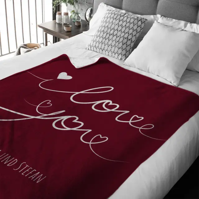 Fotodecke als Geschenk gestalten – 140 x 200cm – Schriftzug I Love mit Herzen rot