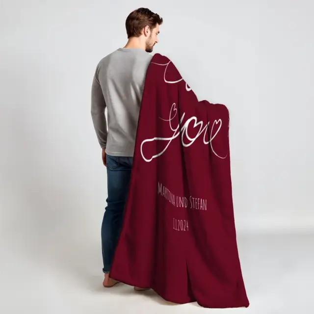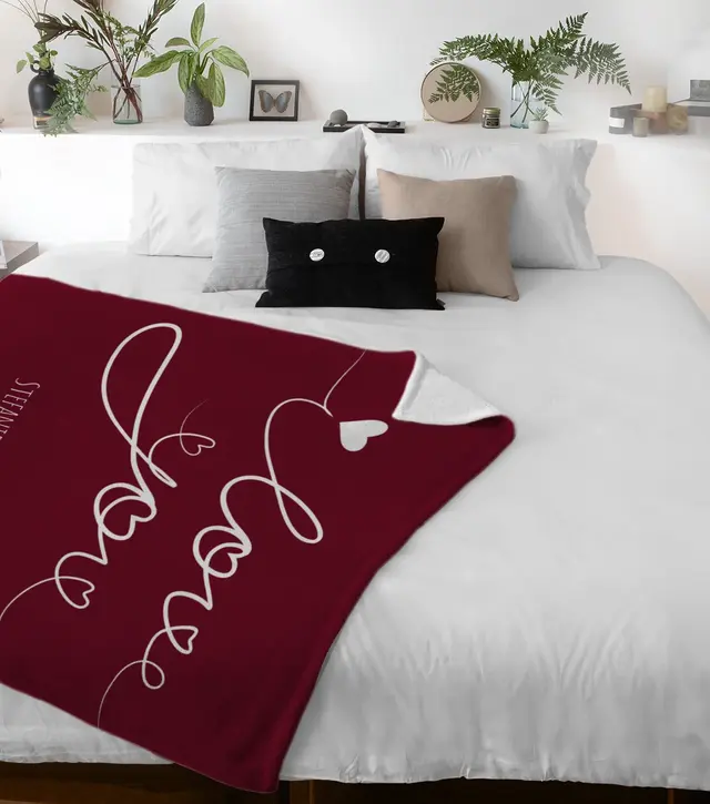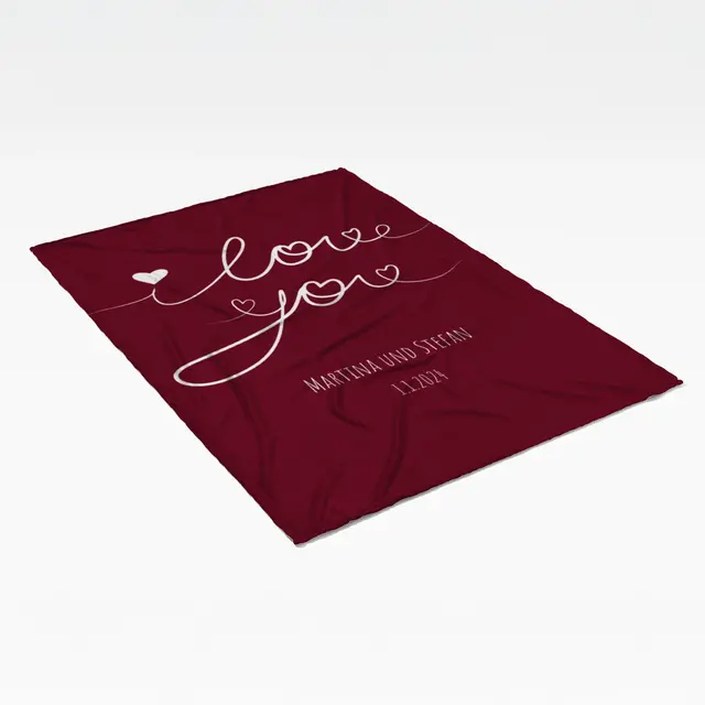 Gestalten Sie Ihr Zuhause mit weichen Kuscheldecken, die Sie ganz nach Ihrem Geschmack designen können. Mit unserer Designvorlage Schriftzug I Love mit Herzen entwerfen Sie ganz einfach in Minutenschnelle Ihre ganz persönliche Wohlfühldecke. Laden Sie das Design Schriftzug I Love mit Herzen in der Layoutanwendung und fügen Ihre persönliche Note hinzu - zum Beispiel eigene Fotos, Text, Namen oder ein besonderes Datum. Der flauschige Stoff macht jede Decke zu einem gemütlichen Hingucker für Sofa, Bett oder Lieblingssessel. Ob dezent, modern oder festlich – unsere Vorlagen bieten für jeden Stil und Anlass das passende Design. So wird jede Decke zu einem besonderen Highlight – für sich selbst oder als besonderes persönliches Geschenk. Ob zum Geburtstag, zu Weihnachten, zum Einzug oder einfach als kleine Aufmerksamkeit – mit persönlichen Fotos, Namen oder Botschaften wird jede Decke zu einem einzigartigen Präsent, das Wärme und Liebe vermittelt.