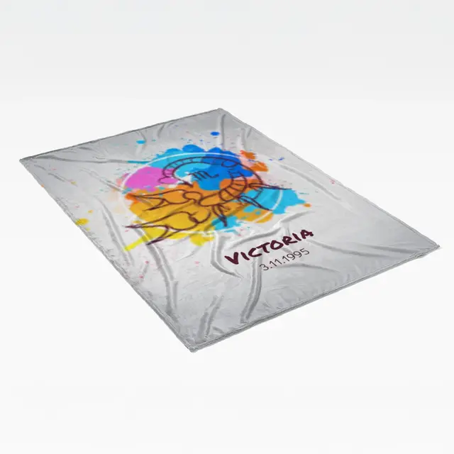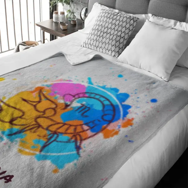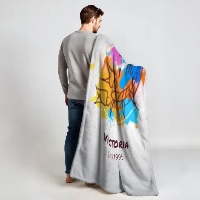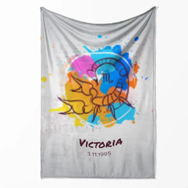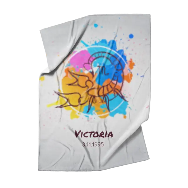 Fotodecke als Geschenk gestalten – 140 x 200cm – Skorpion Splashes mit Namen bunt