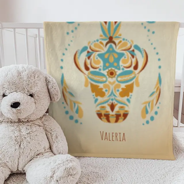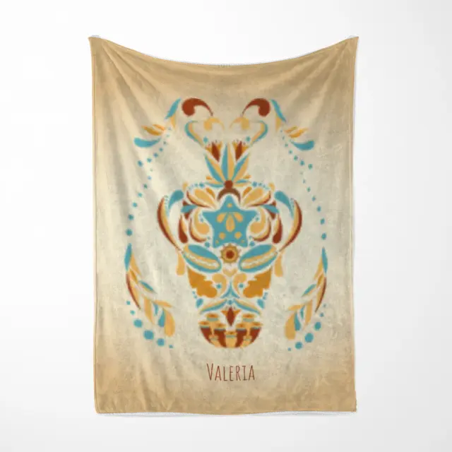 Fotodecke als Geschenk gestalten – 75 x 100cm – Sternzeichen Fische floral mit Namen bunt