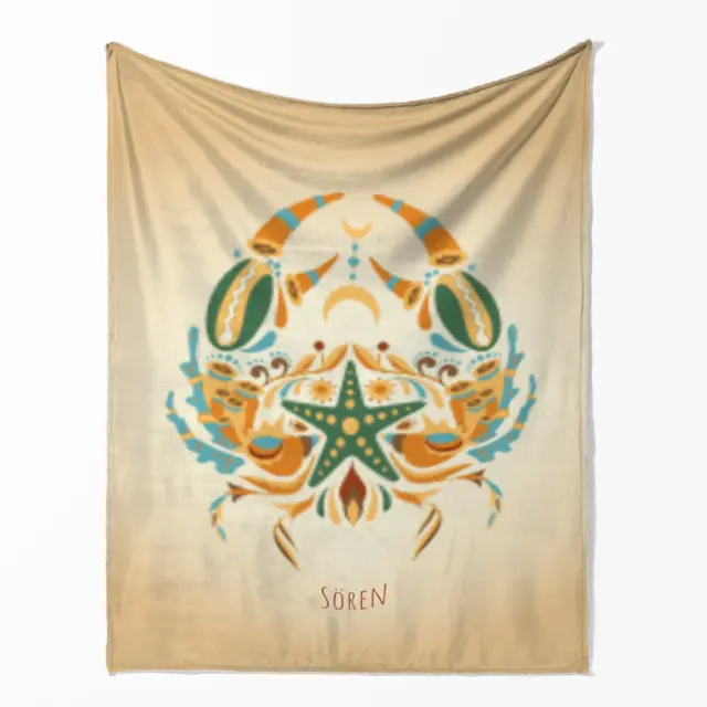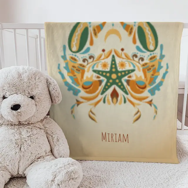 Sternzeichen Krebs floral mit Namen Fotodecke 75 x 100cm als Geschenk bestellen