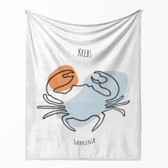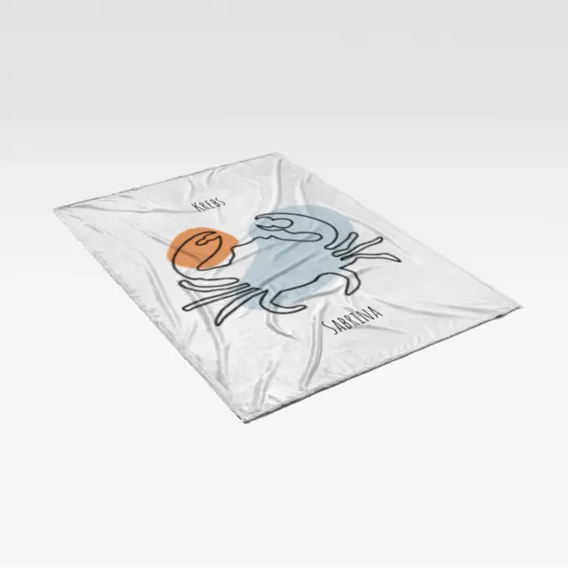Fotodecke als Geschenk gestalten – 140 x 200cm – Sternzeichen Krebs Lineart mit Namen bunt