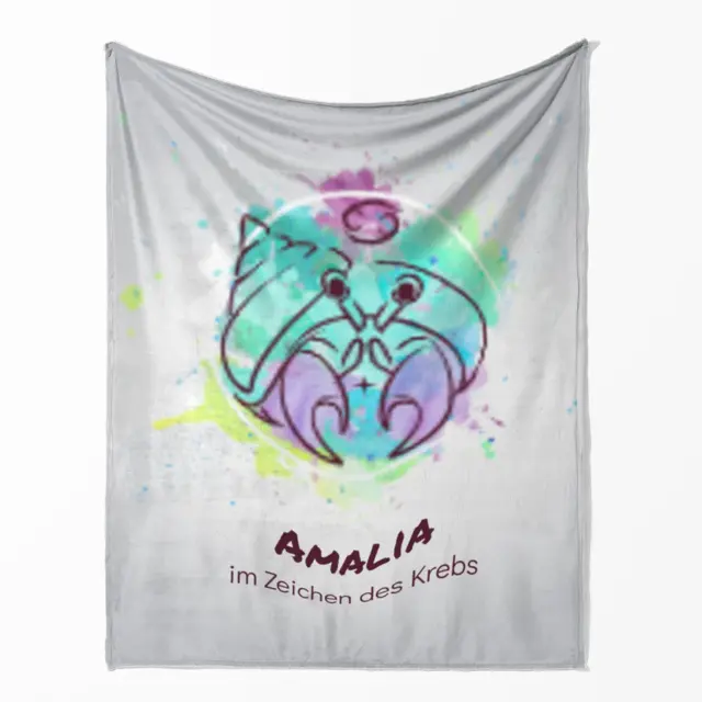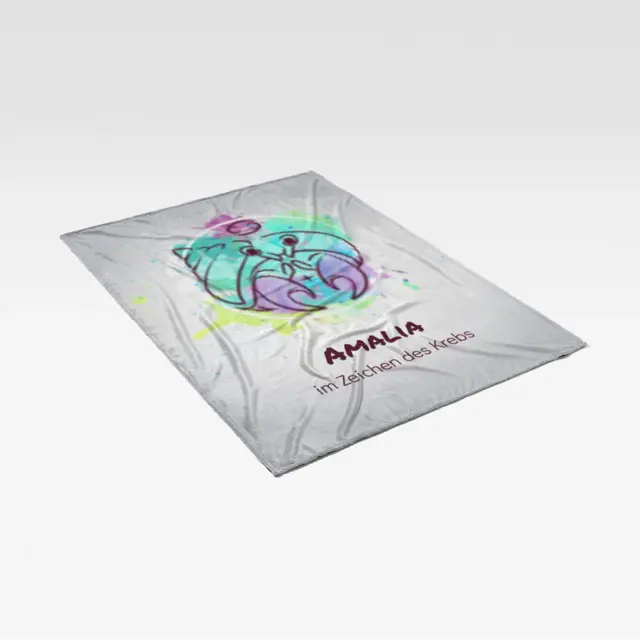 Fotodecke als Geschenk gestalten – 140 x 200cm – Sternzeichen Krebs Splashes mit Namen bunt