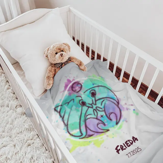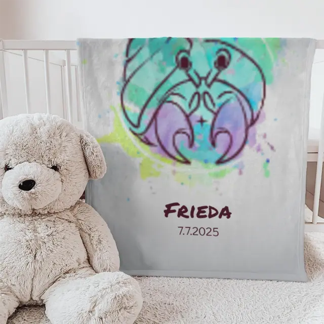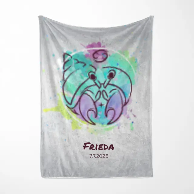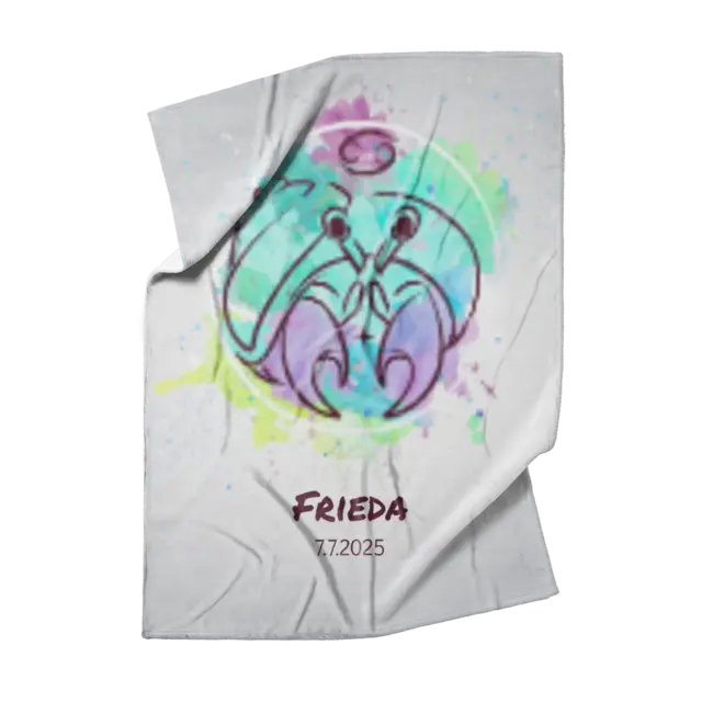 Fotodecke als Geschenk gestalten – 75 x 100cm – Sternzeichen Krebs Splashes mit Namen bunt