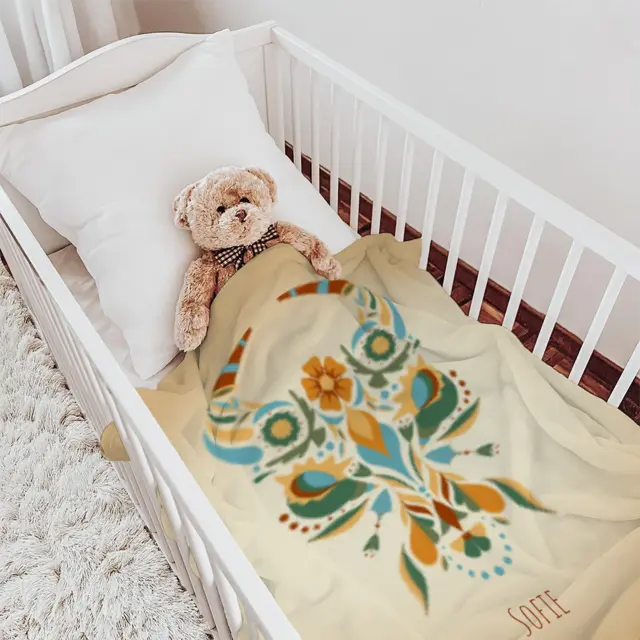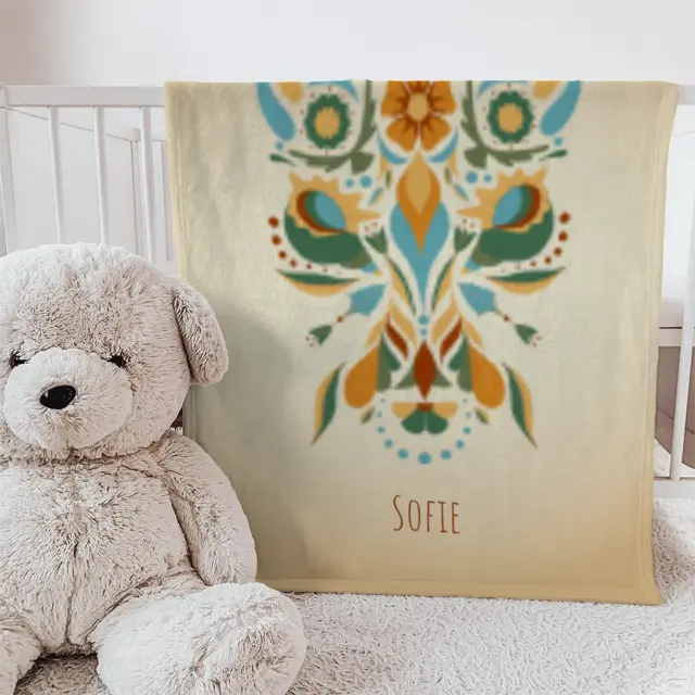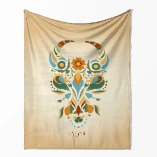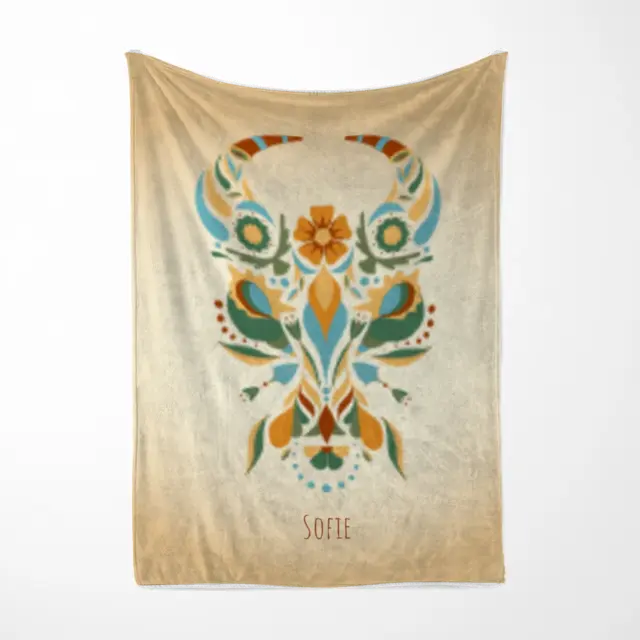 Fotodecke als Geschenk gestalten – 75 x 100cm – Sternzeichen Stier floral mit Namen bunt