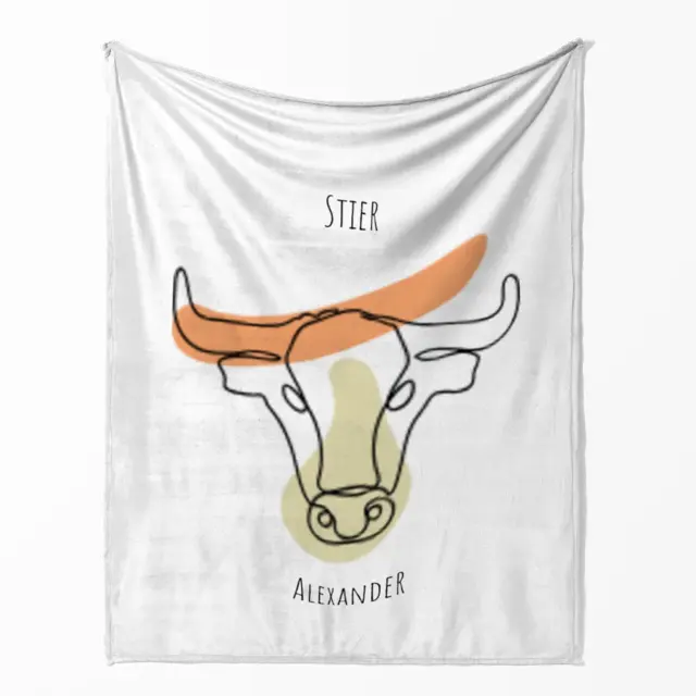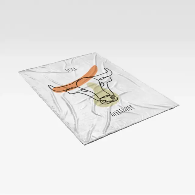 Fotodecke als Geschenk gestalten – 140 x 200cm – Sternzeichen Stier Lineart mit Namen bunt