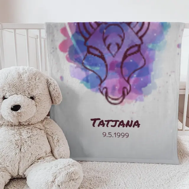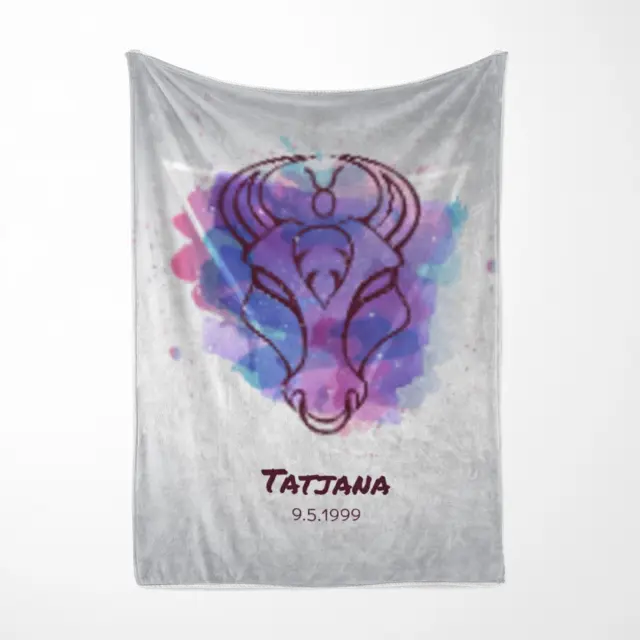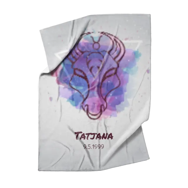 Fotodecke als Geschenk gestalten – 75 x 100cm – Sternzeichen Stier Splashes mit Namen bunt