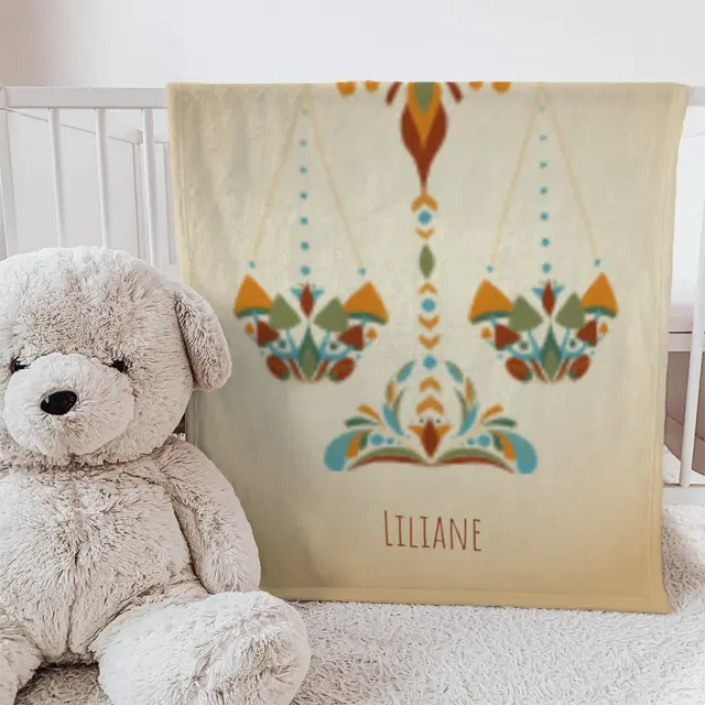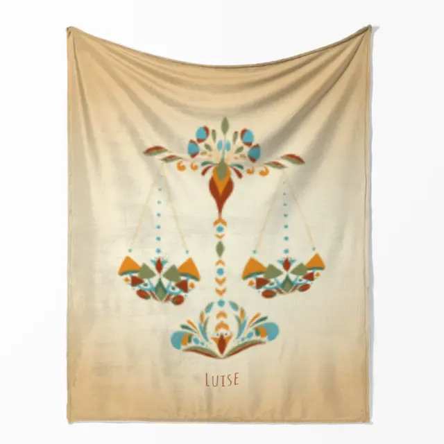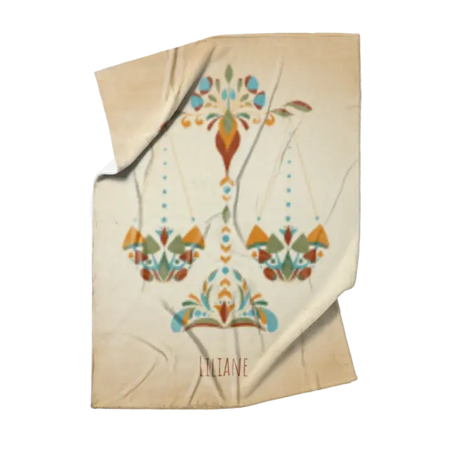 Fotodecke als Geschenk gestalten – 75 x 100cm – Sternzeichen Waage floral mit Namen bunt