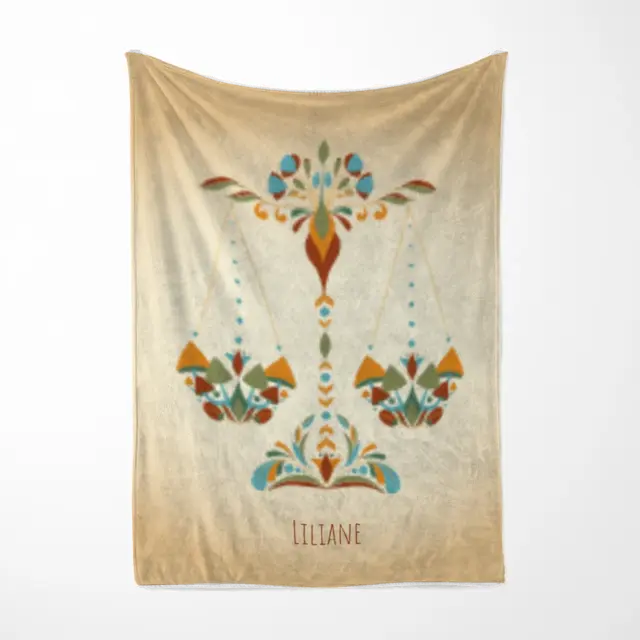 Sternzeichen Waage floral mit Namen Fotodecke 75 x 100cm als Geschenk bestellen