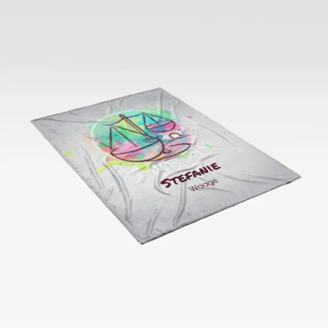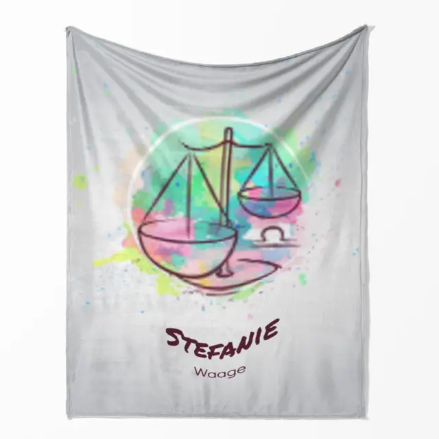 Fotodecke als Geschenk gestalten – 140 x 200cm – Sternzeichen Waage Splashes mit Namen bunt