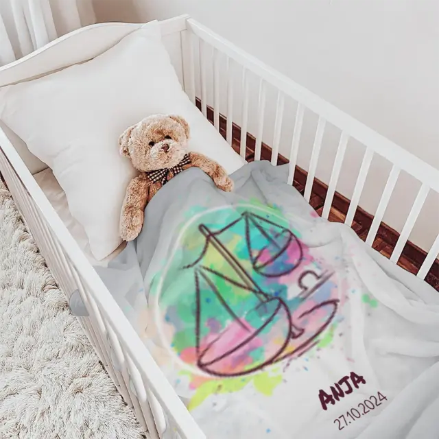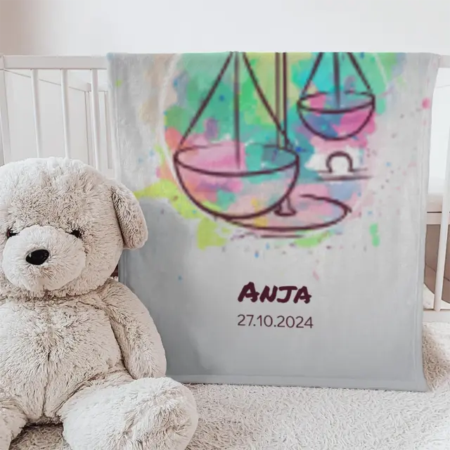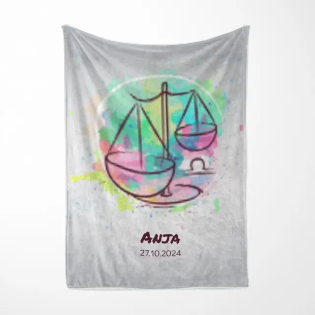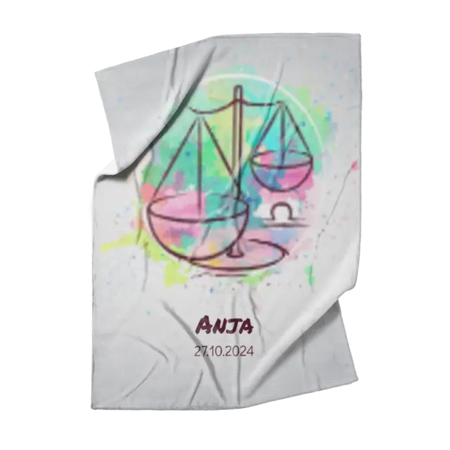 Fotodecke als Geschenk gestalten – 75 x 100cm – Sternzeichen Waage Splashes mit Namen bunt