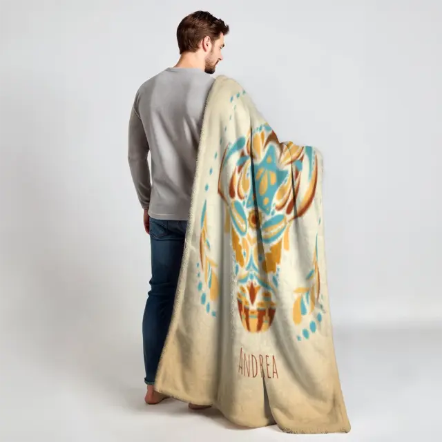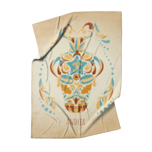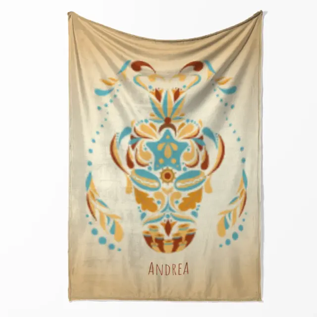 Fotodecke als Geschenk gestalten – 140 x 200cm – Sternzeichen Wassermann floral mit Namen bunt