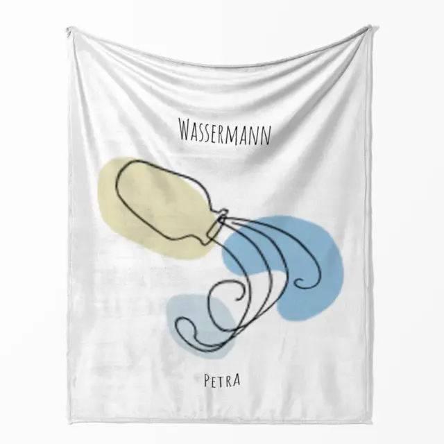 Fotodecke als Geschenk gestalten – 140 x 200cm – Sternzeichen Wassermann Lineart mit Namen bunt