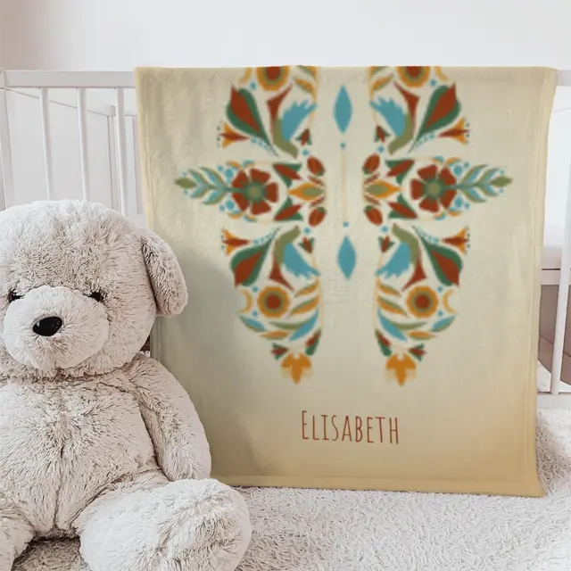 Fotodecke als Geschenk gestalten – 75 x 100cm – Sternzeichen Zwillinge floral mit Namen bunt