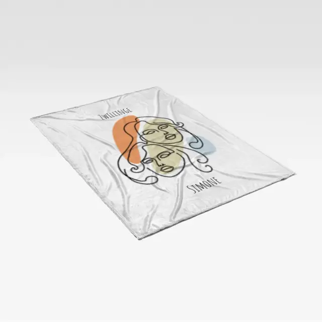 Fotodecke als Geschenk gestalten – 140 x 200cm – Sternzeichen Zwillinge Lineart mit Namen bunt