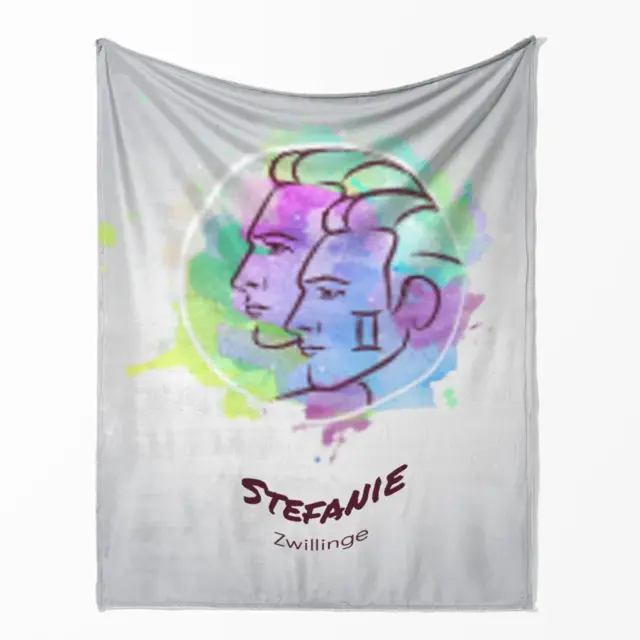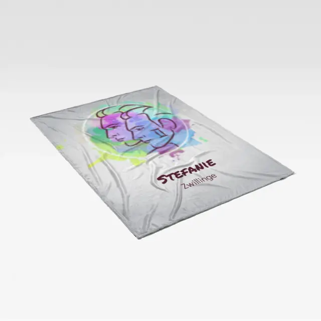 Fotodecke als Geschenk gestalten – 140 x 200cm – Sternzeichen Zwillinge Splashes mit Namen bunt