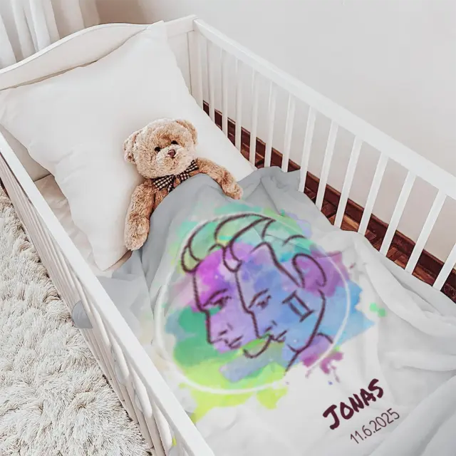 Gestalten Sie Ihr Zuhause mit weichen Kuscheldecken, die Sie ganz nach Ihrem Geschmack designen können. Mit unserer Designvorlage Sternzeichen Zwillinge Splashes mit Namen entwerfen Sie ganz einfach in Minutenschnelle Ihre ganz persönliche Wohlfühldecke. Laden Sie das Design Sternzeichen Zwillinge Splashes mit Namen in der Layoutanwendung und fügen Ihre persönliche Note hinzu - zum Beispiel eigene Fotos, Text, Namen oder ein besonderes Datum. Der flauschige Stoff macht jede Decke zu einem gemütlichen Hingucker für Sofa, Bett oder Lieblingssessel. Ob dezent, modern oder festlich – unsere Vorlagen bieten für jeden Stil und Anlass das passende Design. So wird jede Decke zu einem besonderen Highlight – für sich selbst oder als besonderes persönliches Geschenk. Ob zum Geburtstag, zu Weihnachten, zum Einzug oder einfach als kleine Aufmerksamkeit – mit persönlichen Fotos, Namen oder Botschaften wird jede Decke zu einem einzigartigen Präsent, das Wärme und Liebe vermittelt.