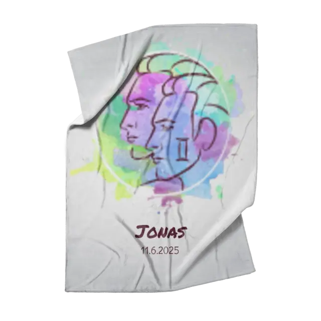 Fotodecke als Geschenk gestalten – 75 x 100cm – Sternzeichen Zwillinge Splashes mit Namen bunt