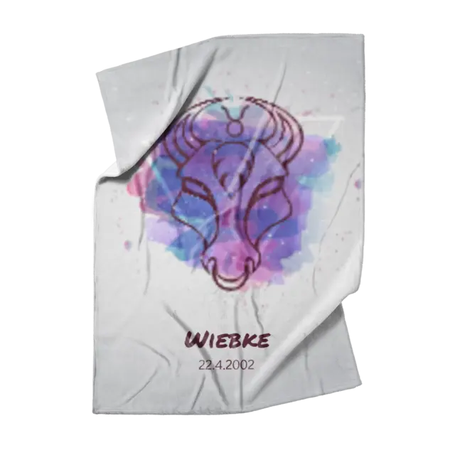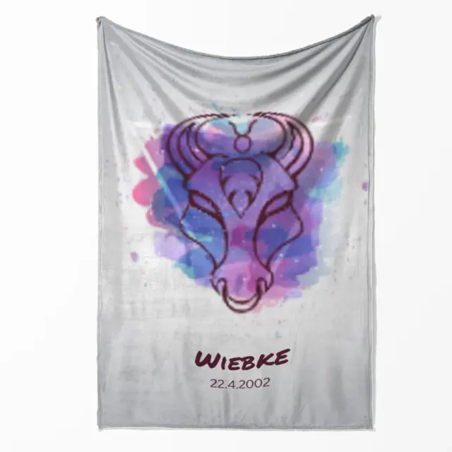 Fotodecke als Geschenk gestalten – 140 x 200cm – Stier Splashes mit Namen bunt