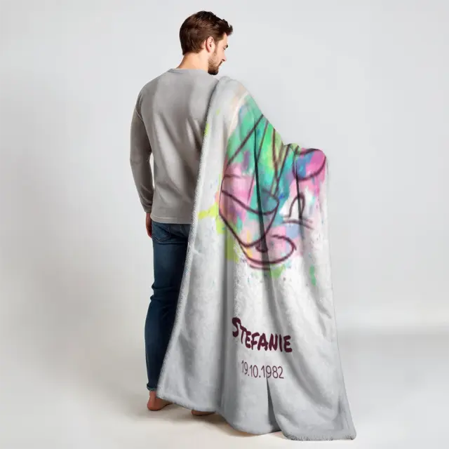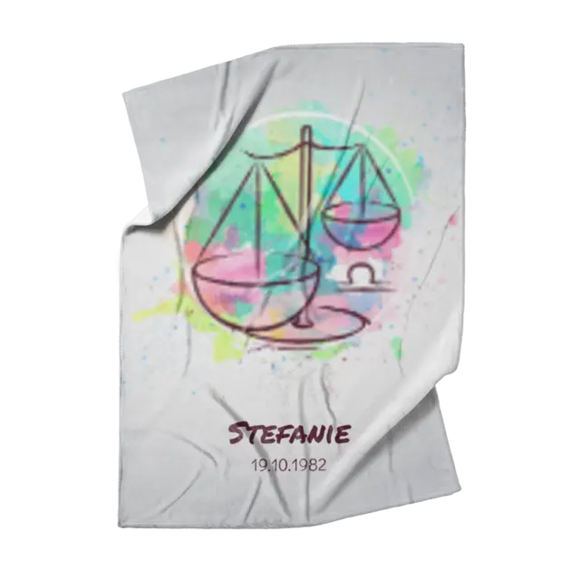 Fotodecke als Geschenk gestalten – 140 x 200cm – Waage Splashes mit Namen bunt