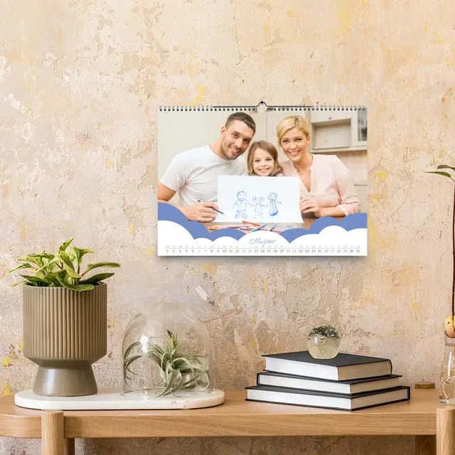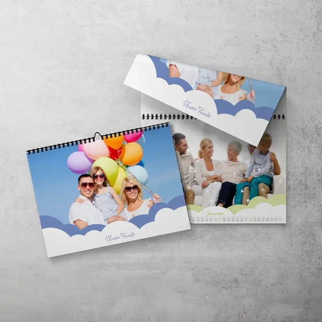 Gestalten Sie Ihren ganz persönlichen Jahresbegleiter als DIN A4 ganz einfach online und noch einfacher mit unserem Design Cloudy All in blau-gruen-rosa! Der Monatskalender bietet jeden Monat Platz für Ihre schönsten Fotos und Erinnerungen. Ob Familienmomente, Urlaubsbilder oder Lieblingsmotive – jedes Kalenderblatt wird zu einem kleinen Kunstwerk, das Sie das ganze Jahr über begleitet.