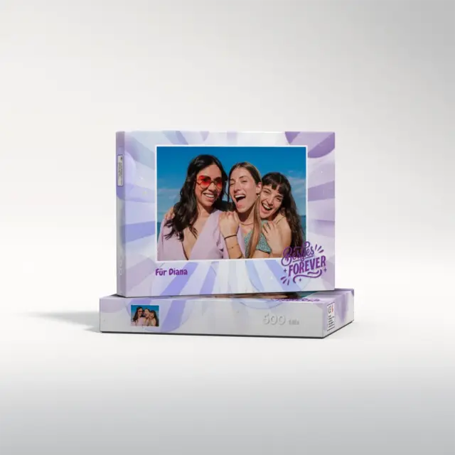 Fotopuzzle als Geschenk gestalten – 1000 Teile Quer – Besties violett-weiss