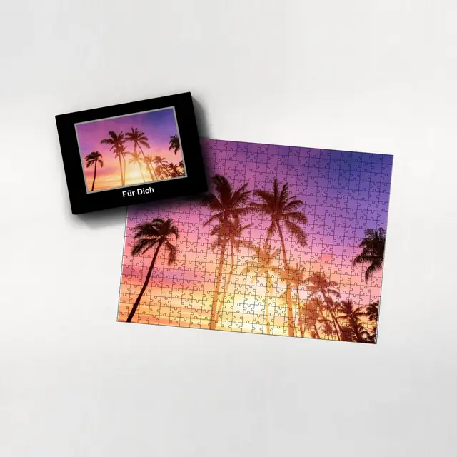Ein individuell gestaltetes Fotopuzzle verwandelt Ihre schönsten Erinnerungen in ein ganz besonderes Erlebnis zum Zusammensetzen. Ob liebevolles Familienfoto, lustiger Schnappschuss oder ein Foto Ihres Haustieres – aus jedem Motiv entsteht ein persönliches Puzzle, das Freude schenkt und besondere Momente festhält. Mit der Puzzle-Schachtel Classic wird daraus ein rundum perfektes Geschenk, das schon beim Auspacken für strahlende Augen sorgt. Das Puzzle wird in einem stabilen Karton geliefert, dessen liebevoll gestaltetes Design den Charakter Ihres Fotogeschenks harmonisch ergänzt. Die Schachtel wirkt wie ein hochwertiges Präsent, das ganz ohne zusätzliche Verpackung auskommt. Dabei ist die Box nicht nur dekorativ, sondern auch funktional: Sie schützt das Puzzle zuverlässig, sorgt für eine ordentliche Aufbewahrung und wird dank ihrer wertigen Optik und Haptik selbst oft zum kleinen Erinnerungsstück.