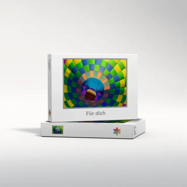 Das neutrale Design ist universell einsetzbar. Es passt zu jeder Gelegenheit. Die Box ist schlicht und zurückhaltend gestaltet, so dass Ihr Puzzledesign im Mittelpunkt steht. Die Farben der Puzzle-Schachtel lassen sich ganz einfach in der Layoutanwendung an Ihre Vorlieben anpassen.Perfekt geeignet für