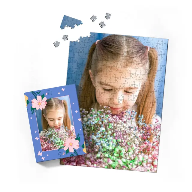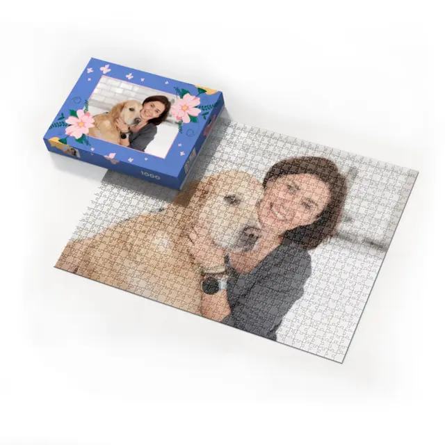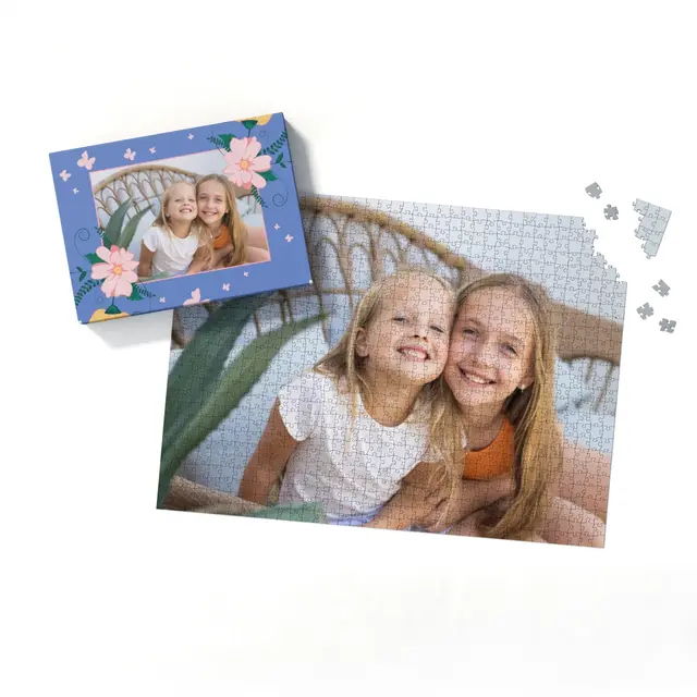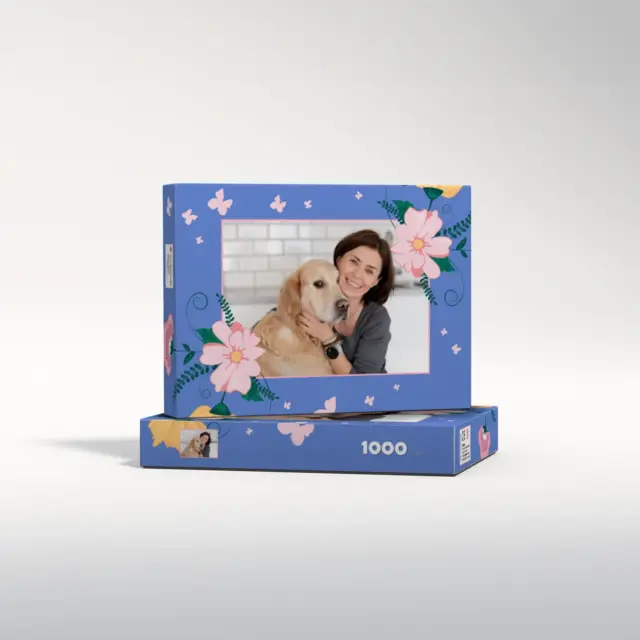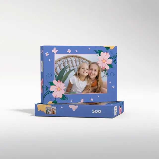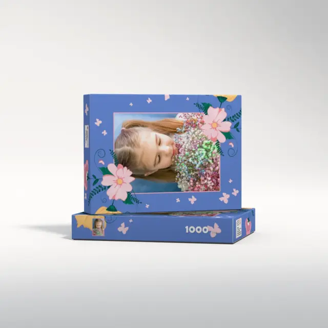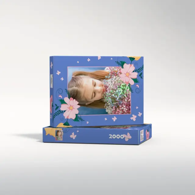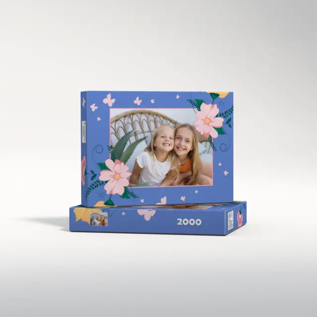 Ein individuell gestaltetes Fotopuzzle verwandelt Ihre schönsten Erinnerungen in ein ganz besonderes Erlebnis zum Zusammensetzen. Ob liebevolles Familienfoto, lustiger Schnappschuss oder ein Foto Ihres Haustieres – aus jedem Motiv entsteht ein persönliches Puzzle, das Freude schenkt und besondere Momente festhält. Mit der Puzzle-Schachtel Flowers and Butterflies wird daraus ein rundum perfektes Geschenk, das schon beim Auspacken für strahlende Augen sorgt. Das Puzzle wird in einem stabilen Karton geliefert, dessen liebevoll gestaltetes Design den Charakter Ihres Fotogeschenks harmonisch ergänzt. Die Schachtel wirkt wie ein hochwertiges Präsent, das ganz ohne zusätzliche Verpackung auskommt. Dabei ist die Box nicht nur dekorativ, sondern auch funktional: Sie schützt das Puzzle zuverlässig, sorgt für eine ordentliche Aufbewahrung und wird dank ihrer wertigen Optik und Haptik selbst oft zum kleinen Erinnerungsstück.