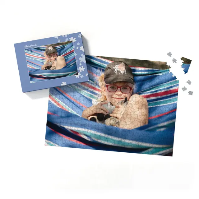 Ein individuell gestaltetes Fotopuzzle verwandelt Ihre schönsten Erinnerungen in ein ganz besonderes Erlebnis zum Zusammensetzen. Ob liebevolles Familienfoto, lustiger Schnappschuss oder ein Foto Ihres Haustieres – aus jedem Motiv entsteht ein persönliches Puzzle, das Freude schenkt und besondere Momente festhält. Mit der Puzzle-Schachtel Puzzleteile wird daraus ein rundum perfektes Geschenk, das schon beim Auspacken für strahlende Augen sorgt. Das Puzzle wird in einem stabilen Karton geliefert, dessen liebevoll gestaltetes Design den Charakter Ihres Fotogeschenks harmonisch ergänzt. Die Schachtel wirkt wie ein hochwertiges Präsent, das ganz ohne zusätzliche Verpackung auskommt. Dabei ist die Box nicht nur dekorativ, sondern auch funktional: Sie schützt das Puzzle zuverlässig, sorgt für eine ordentliche Aufbewahrung und wird dank ihrer wertigen Optik und Haptik selbst oft zum kleinen Erinnerungsstück.