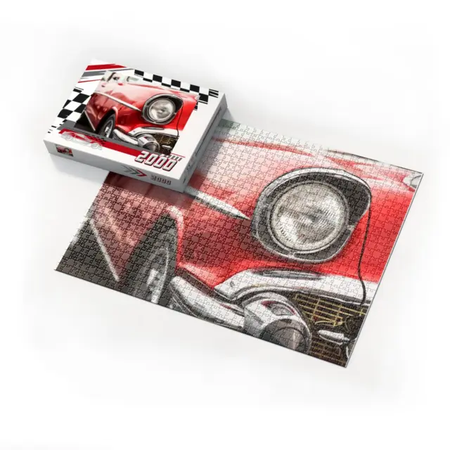 Fotopuzzle als Geschenk gestalten – 1000 Teile Quer – Racingcar schwarz-rot-grau