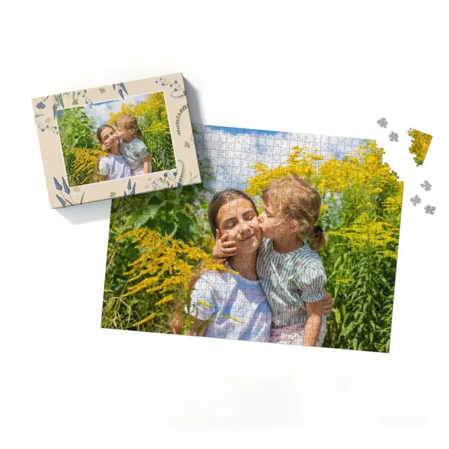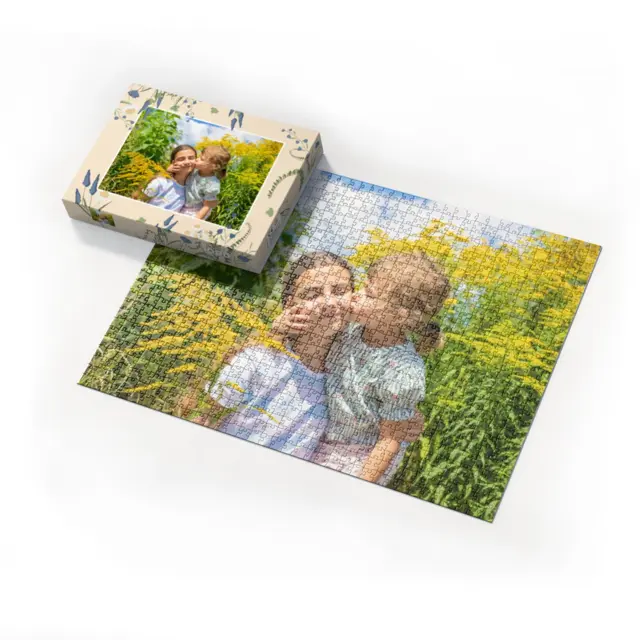 Ein individuell gestaltetes Fotopuzzle verwandelt Ihre schönsten Erinnerungen in ein ganz besonderes Erlebnis zum Zusammensetzen. Ob liebevolles Familienfoto, lustiger Schnappschuss oder ein Foto Ihres Haustieres – aus jedem Motiv entsteht ein persönliches Puzzle, das Freude schenkt und besondere Momente festhält. Mit der Puzzle-Schachtel Sommerwiese wird daraus ein rundum perfektes Geschenk, das schon beim Auspacken für strahlende Augen sorgt. Das Puzzle wird in einem stabilen Karton geliefert, dessen liebevoll gestaltetes Design den Charakter Ihres Fotogeschenks harmonisch ergänzt. Die Schachtel wirkt wie ein hochwertiges Präsent, das ganz ohne zusätzliche Verpackung auskommt. Dabei ist die Box nicht nur dekorativ, sondern auch funktional: Sie schützt das Puzzle zuverlässig, sorgt für eine ordentliche Aufbewahrung und wird dank ihrer wertigen Optik und Haptik selbst oft zum kleinen Erinnerungsstück.