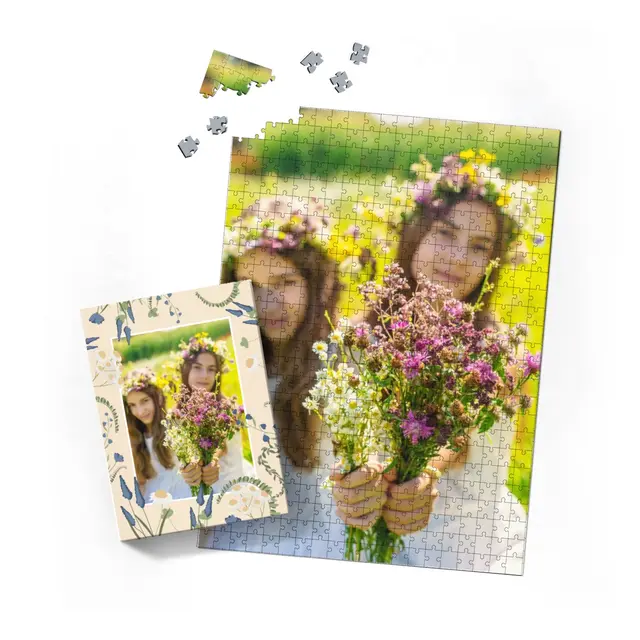Zarte Blüten, verspielte Ranken und florale Motive schmücken diese Puzzle-Schachtel und verleihen ihr einen romantischen, zeitlosen Charme. Sie macht das Fotopuzzle zu einem besonderen Geschenk, das nicht nur beim Zusammensetzen Freude bereitet, sondern auch schon beim Auspacken für Begeisterung sorgt. Dank ihres stilvollen Designs wird die Schachtel zum Dekorations- auf Aufbewahrungselement für Ihr personalisiertes Puzzle.Perfekt geeignet für