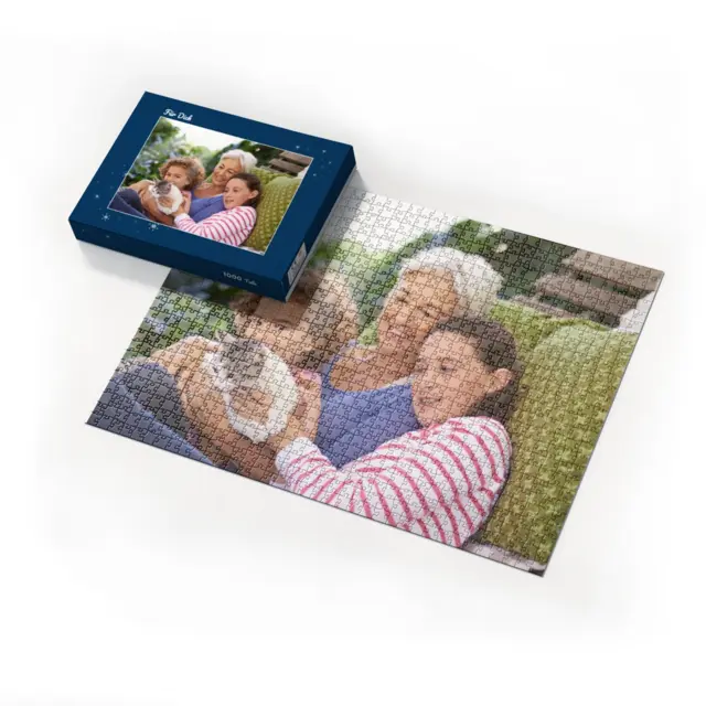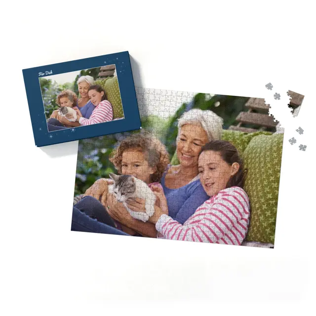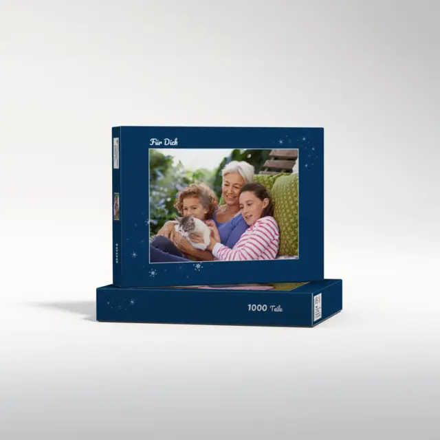 Ein individuell gestaltetes Fotopuzzle verwandelt Ihre schönsten Erinnerungen in ein ganz besonderes Erlebnis zum Zusammensetzen. Ob liebevolles Familienfoto, lustiger Schnappschuss oder ein Foto Ihres Haustieres – aus jedem Motiv entsteht ein persönliches Puzzle, das Freude schenkt und besondere Momente festhält. Mit der Puzzle-Schachtel Sternchen wird daraus ein rundum perfektes Geschenk, das schon beim Auspacken für strahlende Augen sorgt. Das Puzzle wird in einem stabilen Karton geliefert, dessen liebevoll gestaltetes Design den Charakter Ihres Fotogeschenks harmonisch ergänzt. Die Schachtel wirkt wie ein hochwertiges Präsent, das ganz ohne zusätzliche Verpackung auskommt. Dabei ist die Box nicht nur dekorativ, sondern auch funktional: Sie schützt das Puzzle zuverlässig, sorgt für eine ordentliche Aufbewahrung und wird dank ihrer wertigen Optik und Haptik selbst oft zum kleinen Erinnerungsstück.