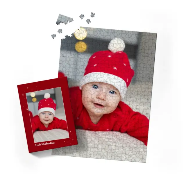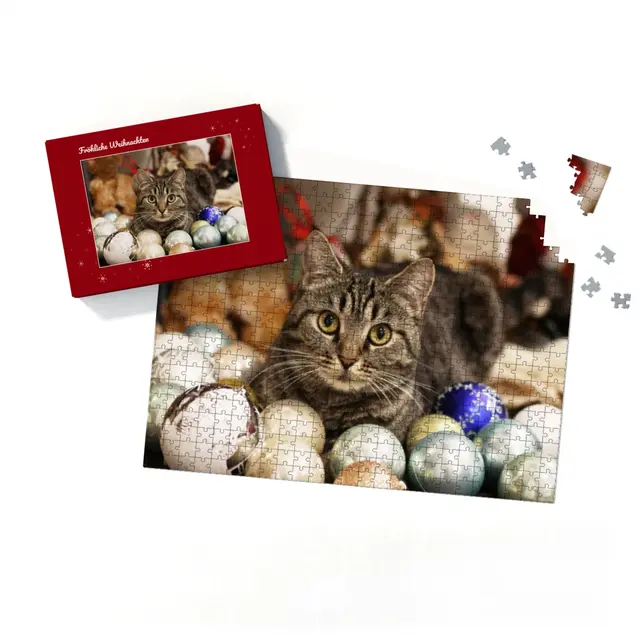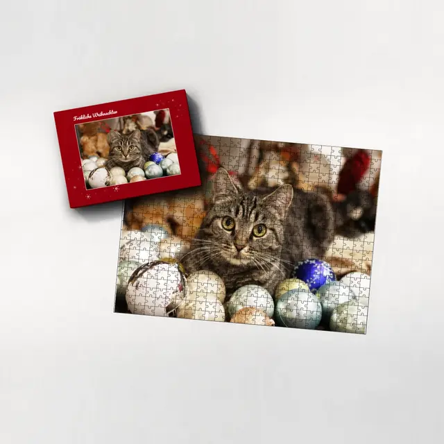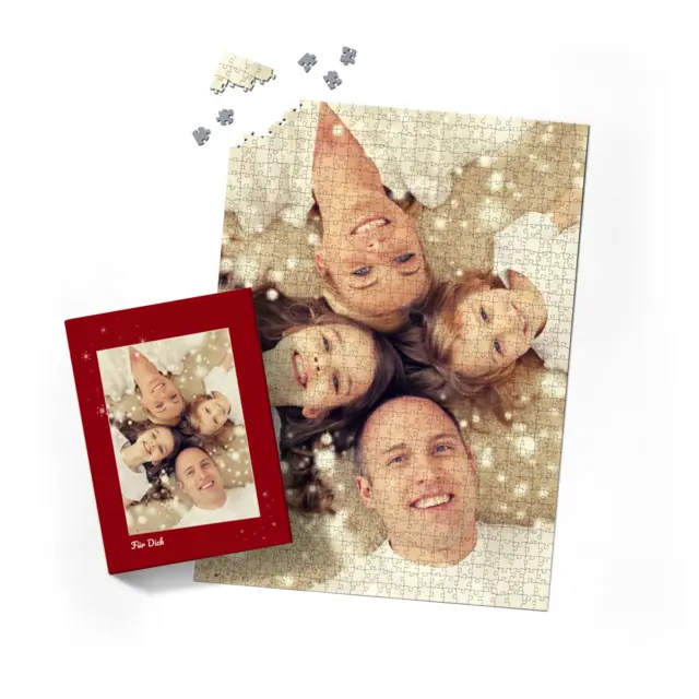 Ein individuell gestaltetes Fotopuzzle verwandelt Ihre schönsten Erinnerungen in ein ganz besonderes Erlebnis zum Zusammensetzen. Ob liebevolles Familienfoto, lustiger Schnappschuss oder ein Foto Ihres Haustieres – aus jedem Motiv entsteht ein persönliches Puzzle, das Freude schenkt und besondere Momente festhält. Mit der Puzzle-Schachtel Sternchen wird daraus ein rundum perfektes Geschenk, das schon beim Auspacken für strahlende Augen sorgt. Das Puzzle wird in einem stabilen Karton geliefert, dessen liebevoll gestaltetes Design den Charakter Ihres Fotogeschenks harmonisch ergänzt. Die Schachtel wirkt wie ein hochwertiges Präsent, das ganz ohne zusätzliche Verpackung auskommt. Dabei ist die Box nicht nur dekorativ, sondern auch funktional: Sie schützt das Puzzle zuverlässig, sorgt für eine ordentliche Aufbewahrung und wird dank ihrer wertigen Optik und Haptik selbst oft zum kleinen Erinnerungsstück.