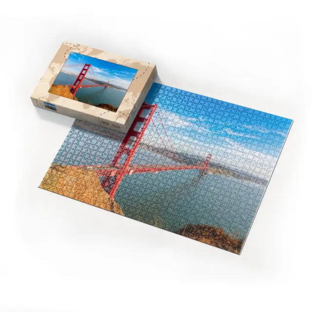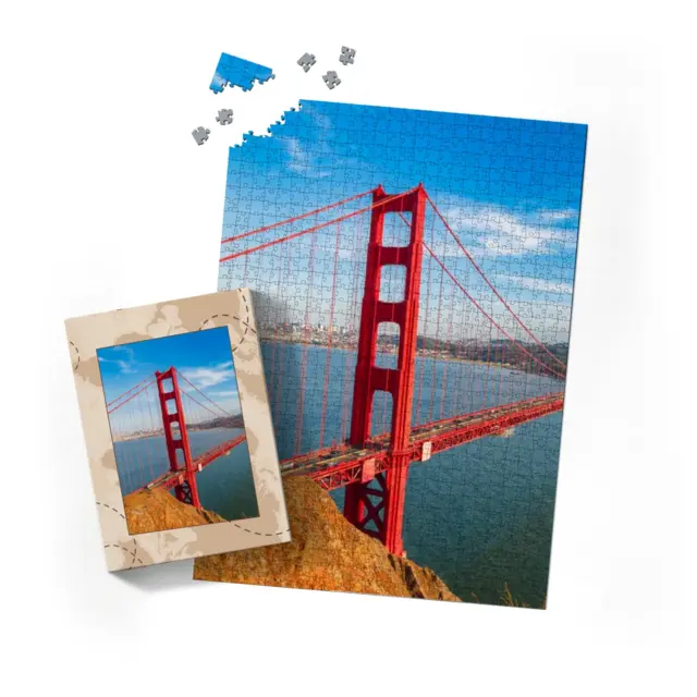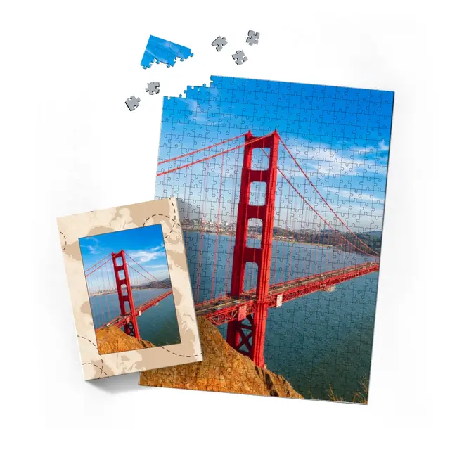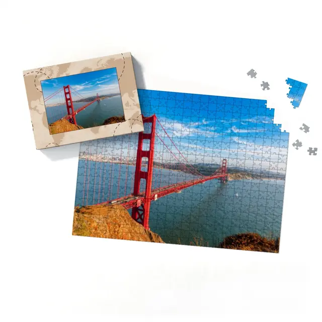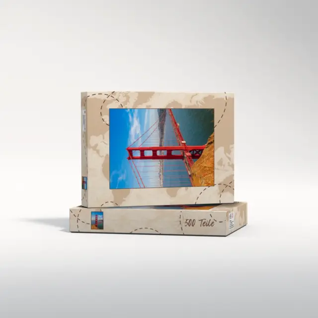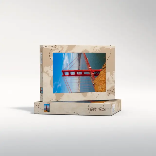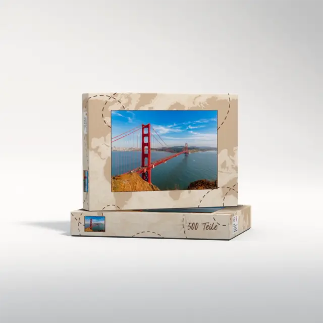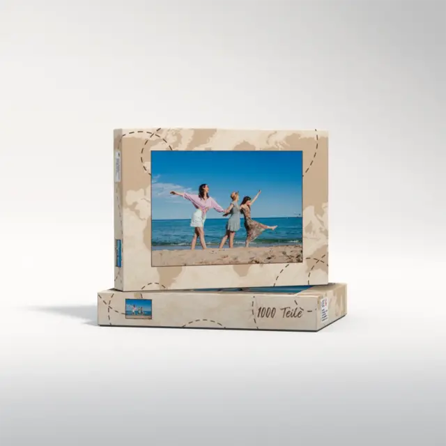 Ein individuell gestaltetes Fotopuzzle verwandelt Ihre schönsten Erinnerungen in ein ganz besonderes Erlebnis zum Zusammensetzen. Ob liebevolles Familienfoto, lustiger Schnappschuss oder ein Foto Ihres Haustieres – aus jedem Motiv entsteht ein persönliches Puzzle, das Freude schenkt und besondere Momente festhält. Mit der Puzzle-Schachtel Weltreise wird daraus ein rundum perfektes Geschenk, das schon beim Auspacken für strahlende Augen sorgt. Das Puzzle wird in einem stabilen Karton geliefert, dessen liebevoll gestaltetes Design den Charakter Ihres Fotogeschenks harmonisch ergänzt. Die Schachtel wirkt wie ein hochwertiges Präsent, das ganz ohne zusätzliche Verpackung auskommt. Dabei ist die Box nicht nur dekorativ, sondern auch funktional: Sie schützt das Puzzle zuverlässig, sorgt für eine ordentliche Aufbewahrung und wird dank ihrer wertigen Optik und Haptik selbst oft zum kleinen Erinnerungsstück.