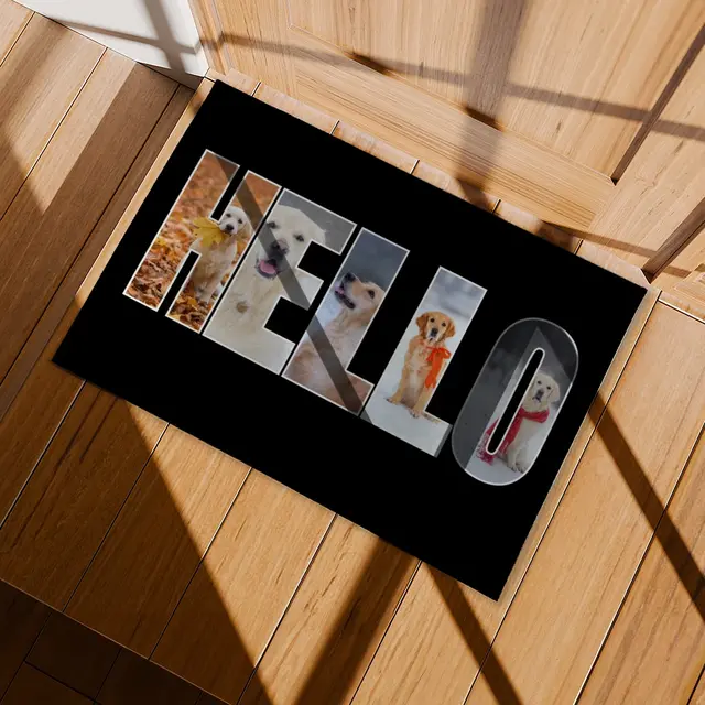 Eine personalisierte Fotofußmatte macht jeden Eingangsbereich zu etwas ganz Besonderem. Ob ein herzliches Familienfoto, ein Willkommensgruß, ein witziger Schnappschuss oder ein Bild Ihres geliebten Haustieres – Ihre schönsten Erinnerungen werden hier zu einem praktischen und zugleich dekorativen Hingucker. Mit der Matte Hello Fotos schenken Sie nicht nur einen individuellen Willkommensgruß, sondern sorgen auch dafür, dass jeder Besucher schon beim Betreten Ihres Zuhauses ein Lächeln auf den Lippen hat. Die Matte ist strapazierfähig, rutschfest und pflegeleicht – perfekt für den täglichen Gebrauch, ohne dass die Schönheit Ihres Motivs verloren geht.