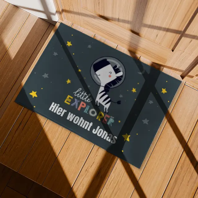Eine personalisierte Fotofußmatte macht jeden Eingangsbereich zu etwas ganz Besonderem. Ob ein herzliches Familienfoto, ein Willkommensgruß, ein witziger Schnappschuss oder ein Bild Ihres geliebten Haustieres – Ihre schönsten Erinnerungen werden hier zu einem praktischen und zugleich dekorativen Hingucker. Mit der Matte Little Explorer schenken Sie nicht nur einen individuellen Willkommensgruß, sondern sorgen auch dafür, dass jeder Besucher schon beim Betreten Ihres Zuhauses ein Lächeln auf den Lippen hat. Die Matte ist strapazierfähig, rutschfest und pflegeleicht – perfekt für den täglichen Gebrauch, ohne dass die Schönheit Ihres Motivs verloren geht.