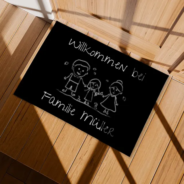 Eine personalisierte Fotofußmatte macht jeden Eingangsbereich zu etwas ganz Besonderem. Ob ein herzliches Familienfoto, ein Willkommensgruß, ein witziger Schnappschuss oder ein Bild Ihres geliebten Haustieres – Ihre schönsten Erinnerungen werden hier zu einem praktischen und zugleich dekorativen Hingucker. Mit der Matte Willkommen Familie II schenken Sie nicht nur einen individuellen Willkommensgruß, sondern sorgen auch dafür, dass jeder Besucher schon beim Betreten Ihres Zuhauses ein Lächeln auf den Lippen hat. Die Matte ist strapazierfähig, rutschfest und pflegeleicht – perfekt für den täglichen Gebrauch, ohne dass die Schönheit Ihres Motivs verloren geht.