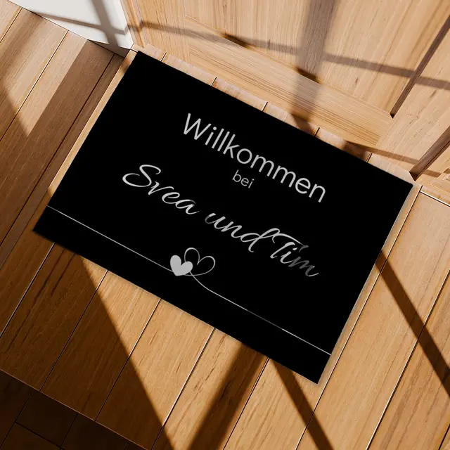 Eine personalisierte Fotofußmatte macht jeden Eingangsbereich zu etwas ganz Besonderem. Ob ein herzliches Familienfoto, ein Willkommensgruß, ein witziger Schnappschuss oder ein Bild Ihres geliebten Haustieres – Ihre schönsten Erinnerungen werden hier zu einem praktischen und zugleich dekorativen Hingucker. Mit der Matte Willkommen Herz schenken Sie nicht nur einen individuellen Willkommensgruß, sondern sorgen auch dafür, dass jeder Besucher schon beim Betreten Ihres Zuhauses ein Lächeln auf den Lippen hat. Die Matte ist strapazierfähig, rutschfest und pflegeleicht – perfekt für den täglichen Gebrauch, ohne dass die Schönheit Ihres Motivs verloren geht.