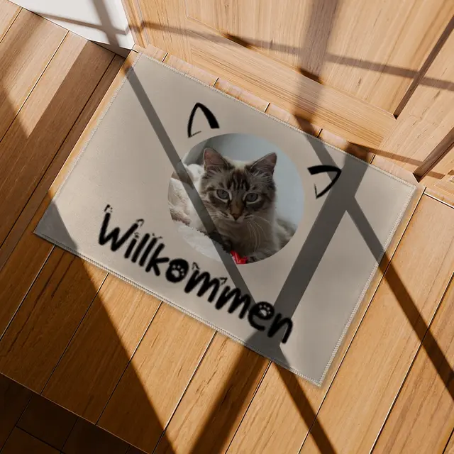 Eine personalisierte Fotofußmatte macht jeden Eingangsbereich zu etwas ganz Besonderem. Ob ein herzliches Familienfoto, ein Willkommensgruß, ein witziger Schnappschuss oder ein Bild Ihres geliebten Haustieres – Ihre schönsten Erinnerungen werden hier zu einem praktischen und zugleich dekorativen Hingucker. Mit der Matte Willkommen Katze schenken Sie nicht nur einen individuellen Willkommensgruß, sondern sorgen auch dafür, dass jeder Besucher schon beim Betreten Ihres Zuhauses ein Lächeln auf den Lippen hat. Die Matte ist strapazierfähig, rutschfest und pflegeleicht – perfekt für den täglichen Gebrauch, ohne dass die Schönheit Ihres Motivs verloren geht.