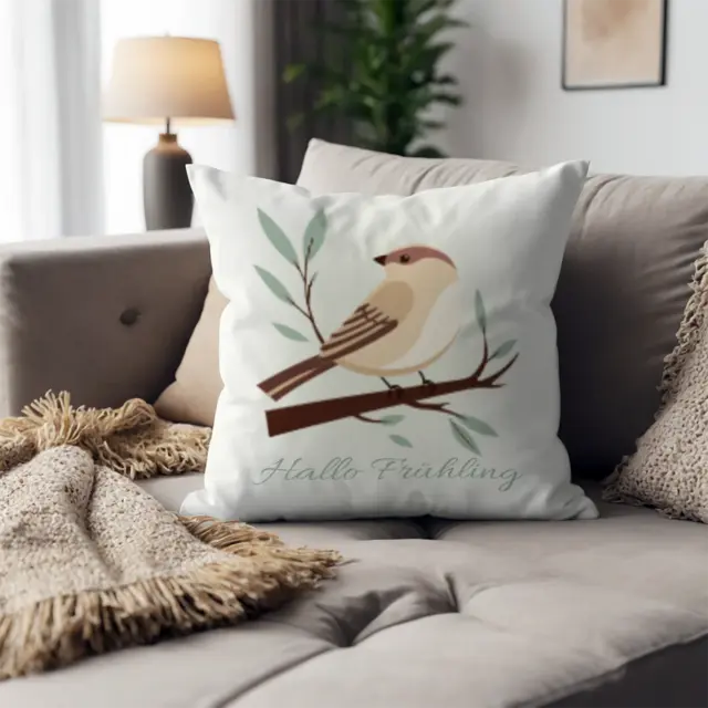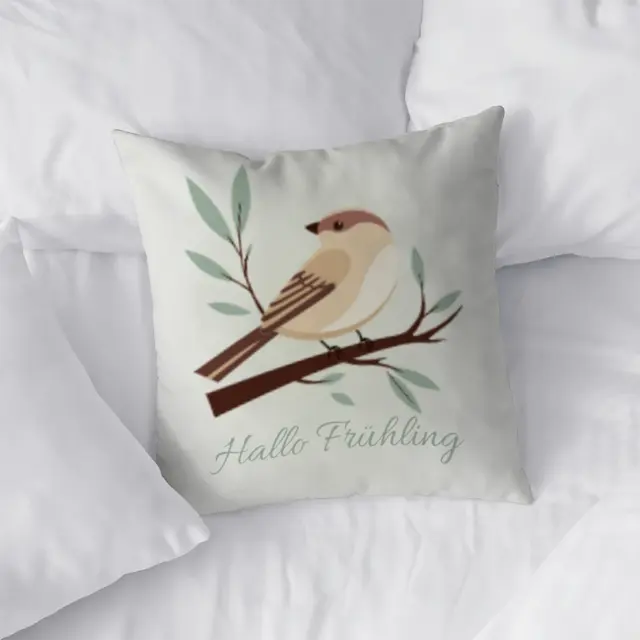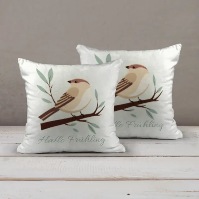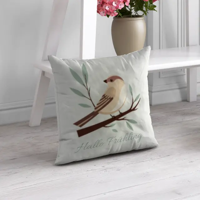 Fotokissen als Geschenk gestalten – 40 x 40 cm – Frühlingsspatz gruen
